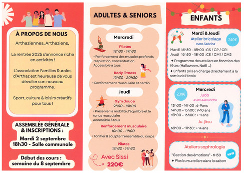 📢 COMMUNICATION FAMILLES RURALES ARTHAZ 📢 ACTIVITÉS 2025-2026